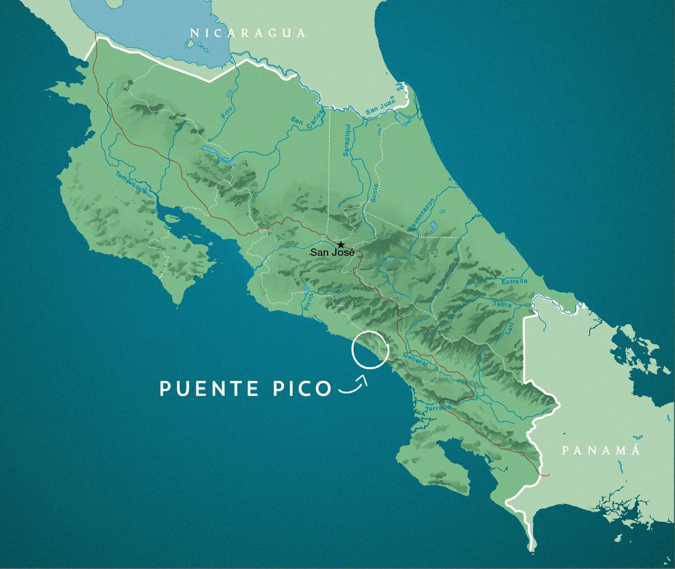 Puente Pico es un nuevo proyecto de conservación con una comunidad de uso mixto, ubicado a unos 4 km de Playa Dominical. Se desarrolla en 213 hectáreas que antes fueron plantación forestal y que están atravesadas por el río Guabo. El proyecto ofrecerá un estilo de vida costero y resiliente, donde el agua, la energía y parte de los alimentos se producirán dentro de la misma comunidad. Puente Pico está registrado y trabaja para obtener la certificación LEED for Communities, lo que lo convertiría en el primero en Costa Rica en recibir este reconocimiento. Es un lugar diseñado para vivir de forma saludable y en armonía con el entorno.
